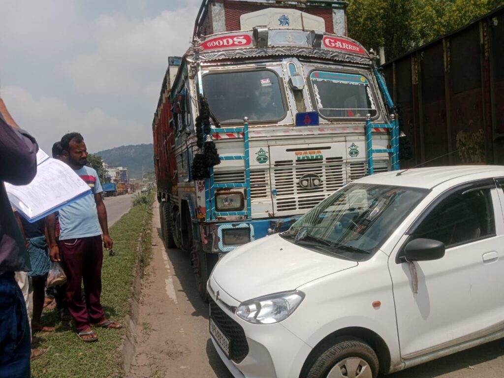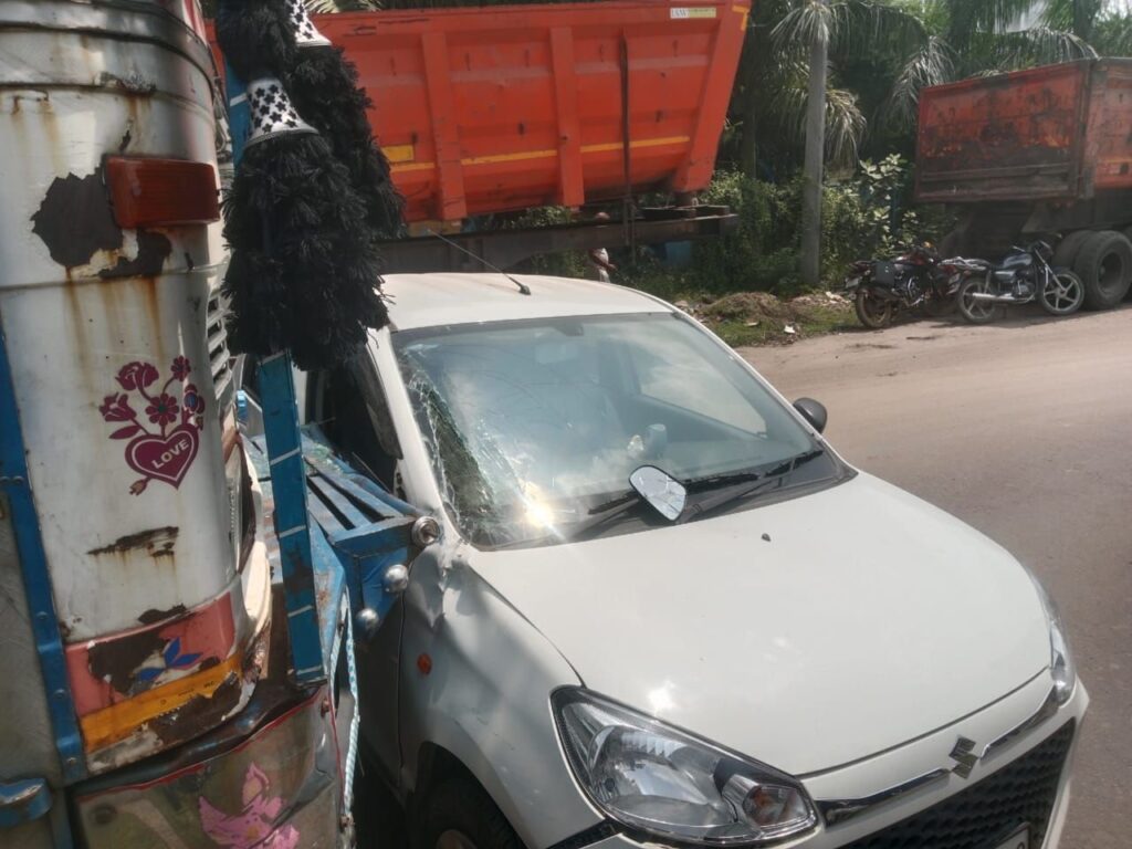 __अनियंत्रित ट्रक ने कार को मारी टक्कर