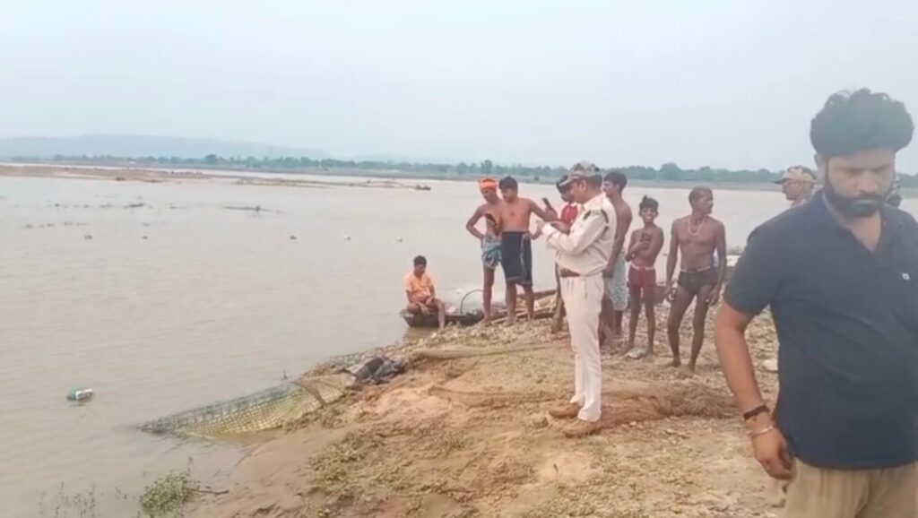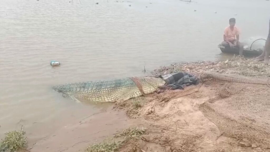 __अघोरी गांव के पास सोन नदी में जाल से मगरमच्छ को पकड़ा