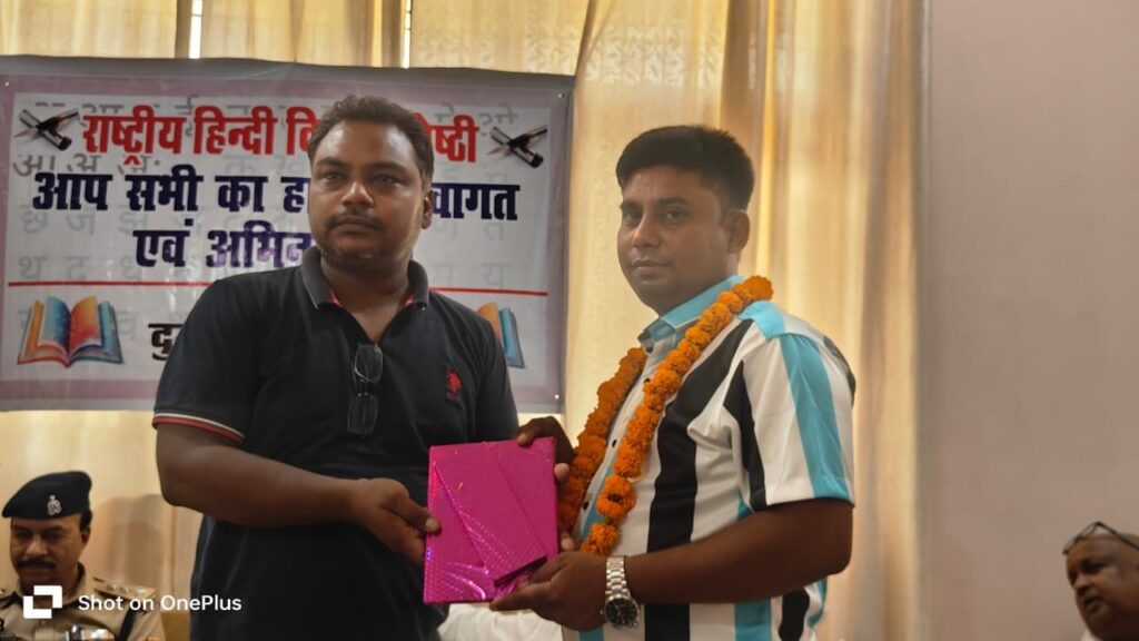 इसके लिए आप सभी धन्यवाद के पात्र हैं और आज इसी कार्यक्रम को लेकर यह आयोजन हुआ है, वरिष्ठ पत्रकार प्रमोद रवानी ने कहा कि आज पत्रकार साथी मिलकर बड़े ही उमंग के साथ तहसील मुख्यालय के पीडब्ल्यूडी गेस्ट हाउस पर हिंदी दिवस मना रहे है हिंदी हमारी मातृ भाषा है विदेशों में भी लोग हिंदी भाषा बोलने की कोशिश कर रहे है, सीख रहे है, हिंदी बोलते भी है,हिंदी भाषा को बढ़ावा देना चाहिए। इसी क्रम में विशिष्ट अतिथि रामेश्वर राय ने कहा कि आज हिंदुस्तान की पहचान हिन्दी से बनता है और ये हमारी पहचान है और इस कार्यक्रम को दुद्धी के पत्रकार साथी आयोजित किया है बहुत ही गौरव की बात है । इसे आगे बढ़ाने का कार्यक्रम करने के लिए बधाई के पात्र है । आये हुए सभी उपस्थित लोगों का स्वागत अभिनंदन करते हुए हिंदी दिवस के अवसर शुभकामना दिया। इस कार्यक्रम की अध्यक्षता वरिष्ठ पत्रकार प्रमोद रवानी के द्वारा की गई।