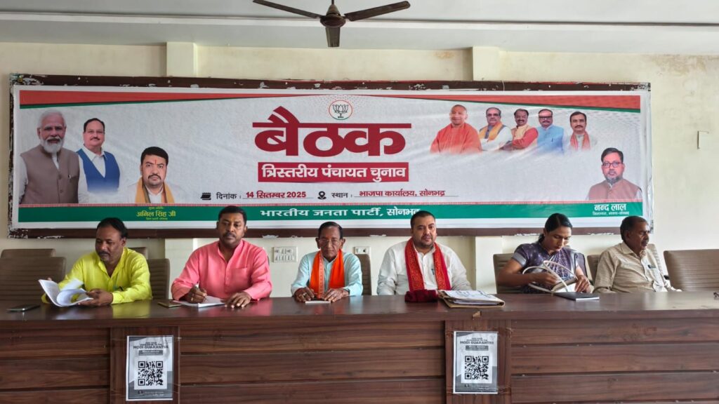 Sonbhadra। भारतीय जनता पार्टी द्वारा आयोजित त्रिस्तरीय पंचायत चुनाव जिला कार्ययोजना बैठक भाजपा जिला कार्यालय पर सम्पन्न हुयी, बैठक मे बतौर मुख्य अतिथि भाजपा जिला प्रभारी अनिल सिंह मौजूद रहे। बैठक का शुभारंम्भ पं0 दीनदयाल उपाध्याय व डॉ श्यामा प्रसाद मुखर्जी के चित्र पर माल्यार्पण व दीप प्रज्जवलन कर किया।
