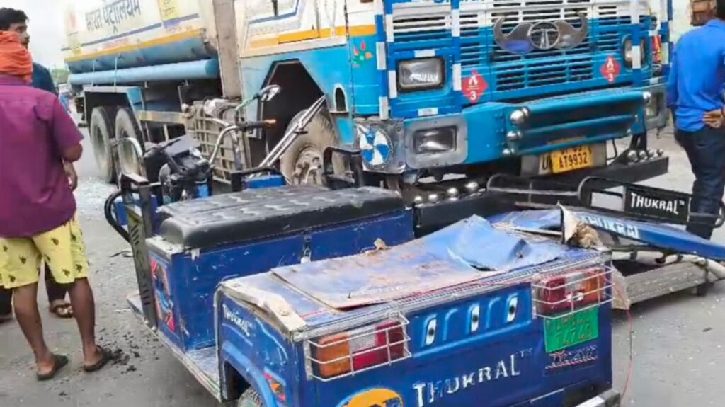 __तेज़ रफ़्तार टैंकर ने पीछे से ई रिक्शा में मारी टक्कर