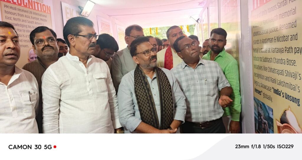 Sonbhadra। सेवा पखवाड़ा 2025 के अंतर्गत प्रधानमंत्री के व्यक्तित्व व कृतित्व, न्यू इन्डिया /2047 तथा प्रदेश सरकार द्वारा जनहित में कियान्वित विभिन्न कल्याणकारी योजनाओं/परियोजनाओं व उपलब्ध्यिों विषयक प्रदर्शनी दिनांक 17 सितम्बर 2025 से 02 अक्टूबर 2025 तक के लिए आर0टी0एस0 क्लब राबर्ट्सगंज परिसर में सूचना विभाग द्वारा स्थापित करायी गयी।