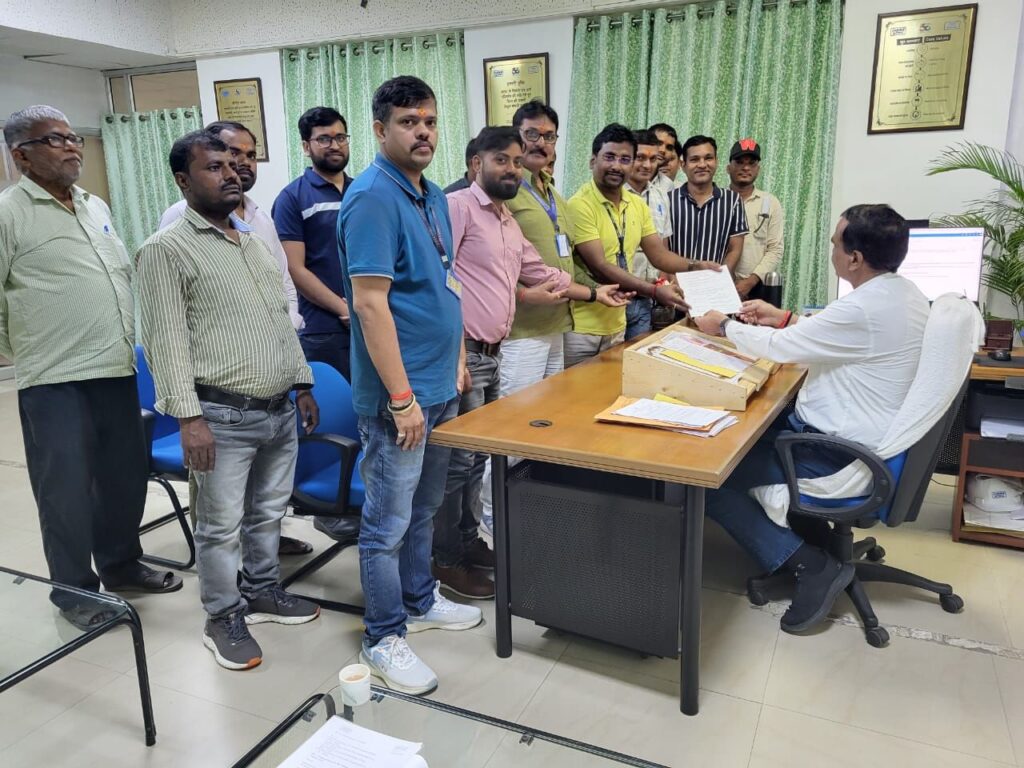 आगामी आठ अक्टूबर को होने वाले कर्मचारी संगठनों के एन बी सी चुनाव को लेकर पर्चा दाखिला गुरुवार को इंटक एवं सीटू के समर्थकों के साथ चुनाव अधिकारी अपर महाप्रबंधक मानव संसाधन बृज किशोर पांडेय के कार्यालय में किया गया।
