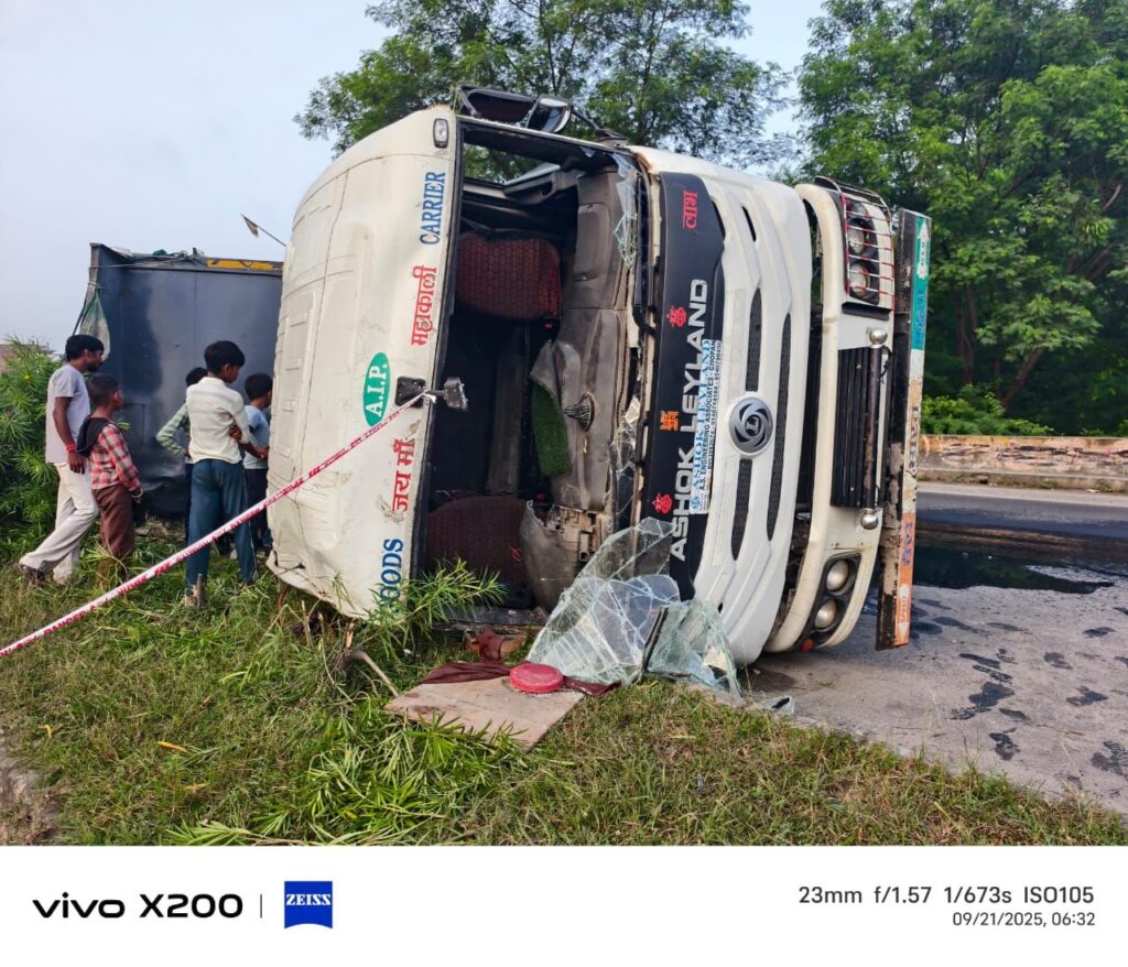 जिसमे खलासी राहुल कुमार को मामूली चोटे आयीं थी। घटना को लेकर लॉ&आर्डर की कोई समस्या नहीं है। यातायात व्यवस्था सुचारु रुप से चल रही है। मौके पर मौजूद चालक अनिल ने बताया साथ में मौजूद सेकेंडियर को हादसे में चोट आई है। दुर्घटना के समय वाहन वही चला रहा था। वाहन को नुकसान हुआ है। वाहन स्वामी आजमगढ़ का रहने वाला है जिसको हादसे की सूचना दे दी गईं है।