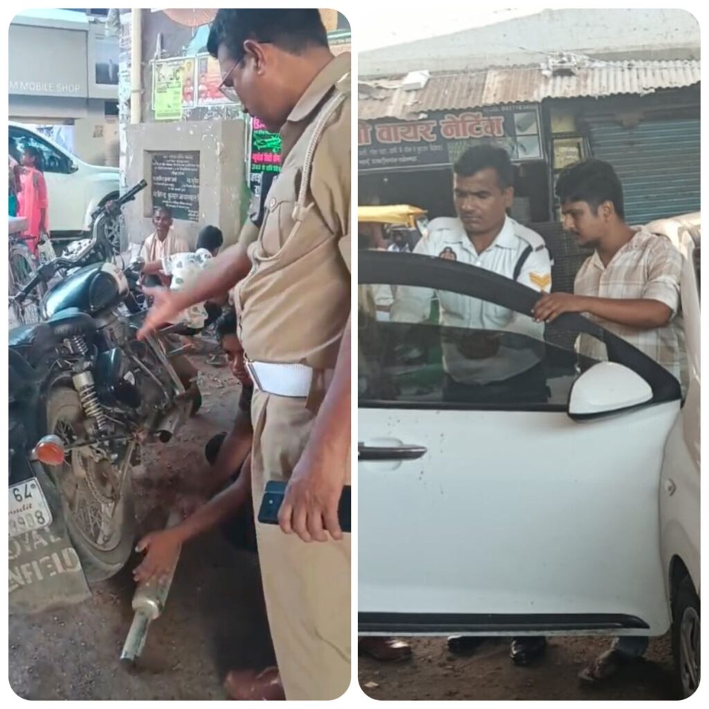 __इस दौरान मॉडिफाइड बुलेट, जाति सूचक लिखे शब्द, ओवरलोड सवारी, काली फिल्म, सीट बेल्ट न पहनना समेत किया गया चेकिंग