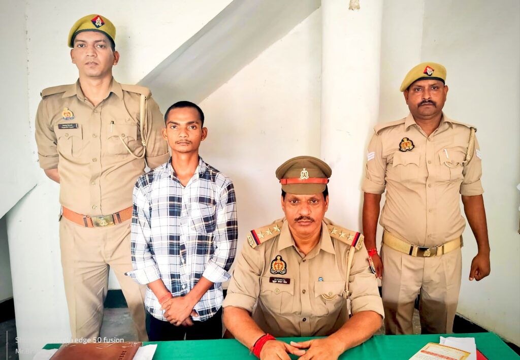 प्रभारी निरीक्षक चोपन, कुमुद शेखर सिंह के नेतृत्व में वांछित अभियुक्त की गिरफ्तारी हेतु चलाये जा रहे अभियान के अनुपालन में थाना चोपन पर पंजीकृत मु0अ0स0 339/25 धारा 64(2)m,352,115(2),351(3) BNS 5J(ii)/6, 5L/6 पाक्सो एक्ट से सम्बन्धित वांछित अभियुक्त बंजरगी सिंह पुत्र स्व0 अनिल सिंह निवासी बाडी डाला थाना चोपन सोनभद्र उम्र करीब 22 वर्ष, को आज नगर पंचायत कार्यालय मोड़ चोपन थाना चोपन सोनभद्र से गिरफ्तार कर न्यायालय भेजा गया ।