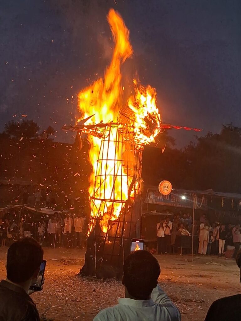 इसके साथ ही असत्य पर सत्य और अधर्म पर धर्म की विजय का संदेश जीवित हुआ जैसे ही मैदान में रावण का विशालकाय पुतला धू धू कर जलने लगा, पूरा वातावरण जय श्री राम के गगनभेदी नारों से गूंज उठा अनुमानित हजारों की भीड़ इस अद्भुत दृश्य के साक्षी बने। पुतला दहन के बाद दशहरे का मेला का लुत्फ मेले में आए सभी लोग उठाते हां, बच्चे गुब्बारे, खिलौने,चाट, पकौड़ी, का आनंद उठाते दिखे। वही बड़ों ने गुड़ की जलेबी खुरमा का स्वाद चखा पूरा वातावरण श्रद्धा और उल्लास से सराबोर हो उठा ।