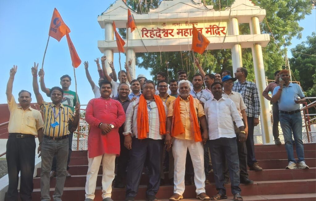 एनटीपीसी रिंहद कर्मचारी यूनियन के चुनाव में भारतीय मजदूर संघ,, बी एम एस ,,को भारी जीत मिलने से पूरे क्षेत्र में और विशेषकर संघ परिवार में खुशी का माहौल है। बजरंगदल काशी प्रांत के सह संयोजक संदीप गुप्ता एवं चंदन कुमार ने बीएमएस के अध्यक्ष राकेश राय एवं महामंत्री एस एन पाठक जी को अंगवस्त्र प्रदान कर उन्हें सम्मानित किया तथा सभी कार्यकर्ताओं को जीत की बधाई देते हुए शुभकामनाएं दीं एवं कहा यह जीत अनवरत जारी रहनी चाहिए।