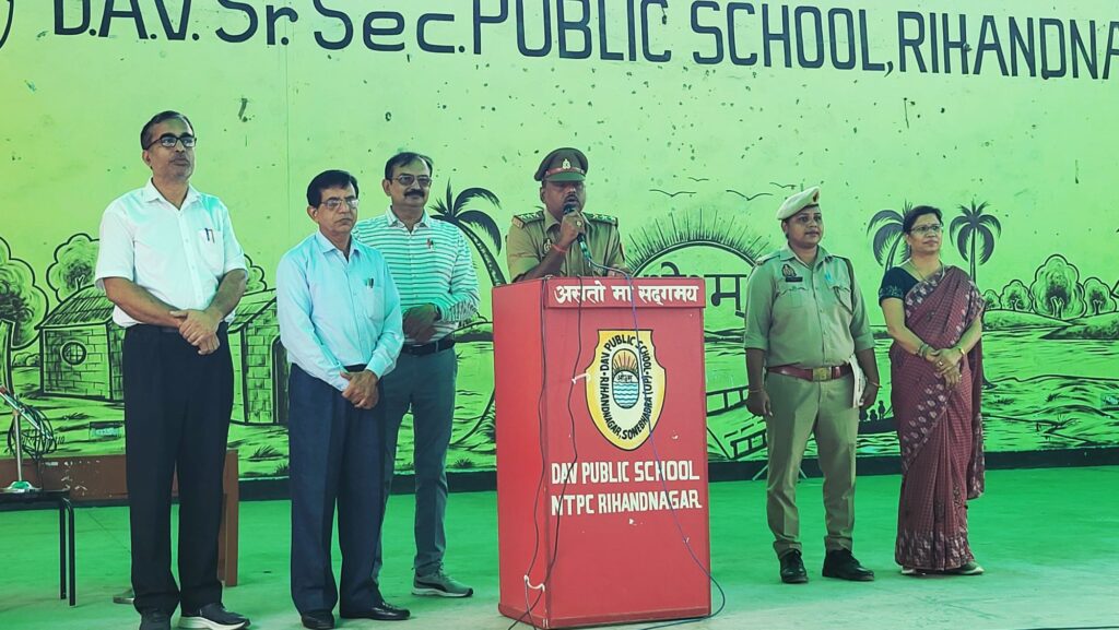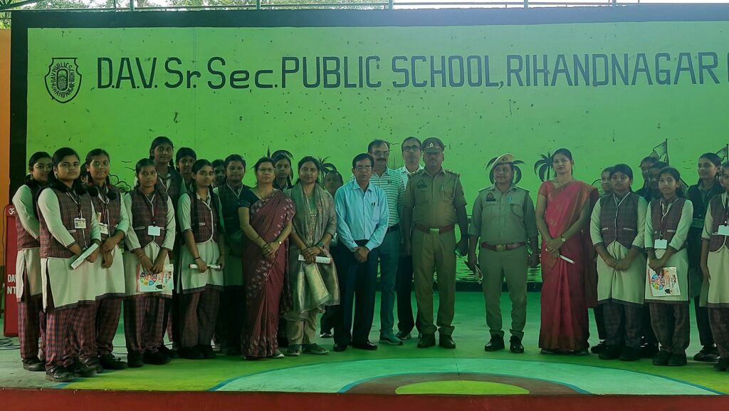 रिंहदनगर एनटीपीसी परिसर में स्थित डीएवी पब्लिक स्कूल में बीजपुर थाना प्रभारी श्री नरेन्द्र कुमार सिंह के नेतृत्व में साइबर सुरक्षा एवं बालिका सशक्तिकरण अभियान के तहत विद्यार्थियों को प्रशिक्षित किया गया। इस अवसर पर सर्वप्रथम विद्यालय के एनसीसी कैडेट्स सूर्य प्रताप सिंह, आदित्य चौधरी, अदालत पाल एवं प्रशांत शाही ने थानाध्यक्ष को सलामी दिया।