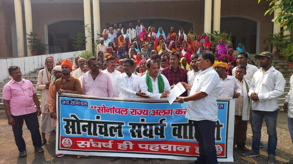 SONBHADRA । । चतरा ब्लॉक अंतर्गत पटना गांव के सैकड़ों आदिवासियों ने सोमवार को सोनांचल संघर्ष वाहिनी के नेतृत्व में जिलाधिकारी कार्यालय पर जोरदार प्रदर्शन किया। मांगों का ज्ञापन डीएम के प्रतिनिधि रामलाल यादव को सौंपा गया।प्रदर्शनकारियों का नेतृत्व करते हुए सोनांचल संघर्ष वाहिनी के राष्ट्रीय अध्यक्ष एडवोकेट रोशन लाल यादव ने कहा कि पटना रेंज के वनाधिकारी और कर्मचारीगण पटना गांव के गंदूडीह टोले में पुश्तैनी जोत कोड कर रहे लगभग 200 परिवार जो डेढ़ सौ बीघा जमीन पर काबिज हैं ।