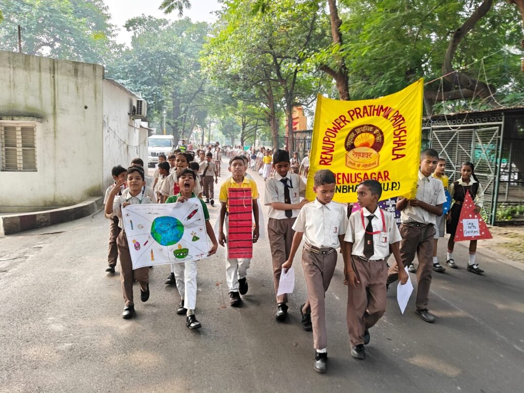 हिंडालको रेनुसागर के यूनिट हेड आर पी सिंह के मार्गदर्शन में एच आर हेड आशीष पांडेय के दिशा निर्देशन में रेनूपावर प्राथमिक पाठशाला, रेनुसागर द्वारा “पटाखे बंद करो प्रदूषण कम करो” जागरूकता रैली आयोजित कर लोगों को किया जागरूक। रेनू पावर प्राथमिक पाठशाला, रेनू सागर सोनभद्र, के प्रभारी प्रधानाचार्य डॉक्टर बृजेश कुमार सिंह एवं के के त्रिपाठी के कुशल नेतृत्व में रेनूपावर प्राथमिक पाठशाला, रेनुसागर सोनभद्र द्वारा दीपावली पर्व के दृष्टिगत “पटाखे बंद करो प्रदूषण कम करो” थीम पर एक जागरूकता रैली का आयोजन किया गया।
