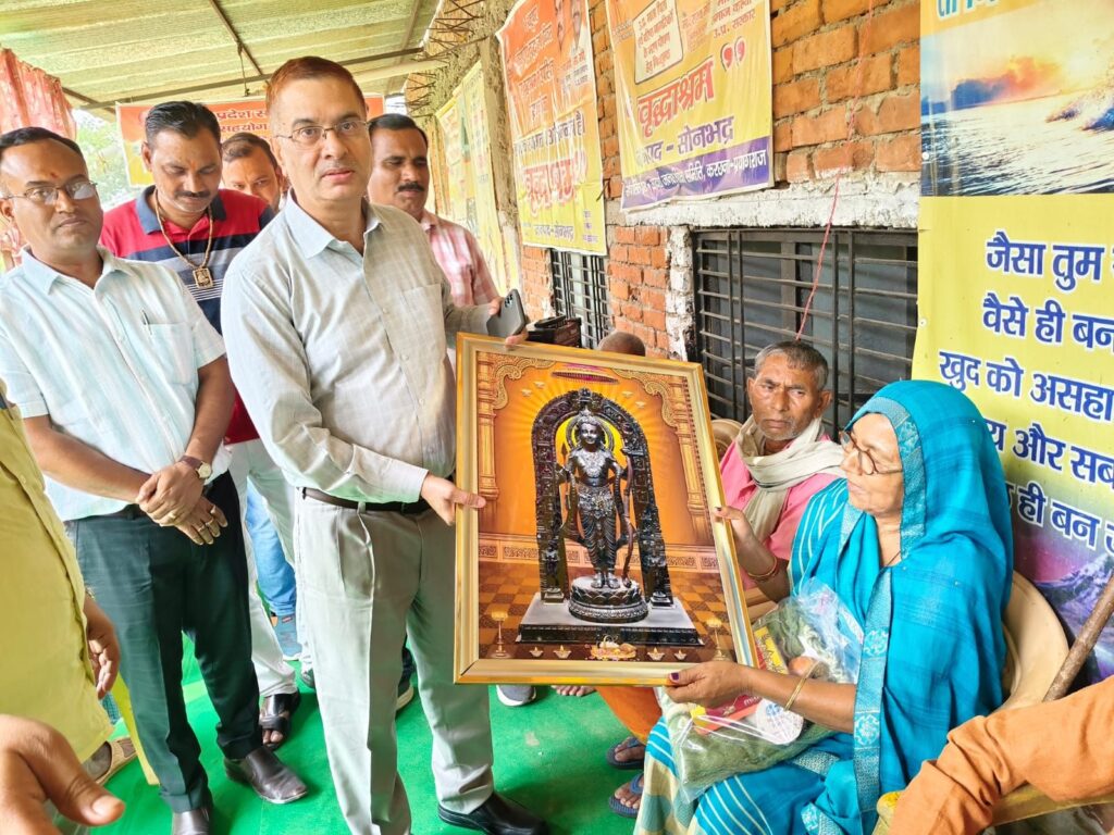SONBHADRA । जिलाधिकारी बद्रीनाथ सिंह दीपावली पर्व के शुभ अवसर पर लोढ़ी स्थित वृद्धाश्रम पहुंचकर वृद्ध माताओं व बुजर्गो के साथ दीपावली का पर्व मनाया गया। इस दौरान उनके द्वारा वृद्धों, विधवाओं को मिष्ठान, दीप, मोमबत्ती, फल-फूल, स्वेटर व शाल उपहार इत्यादि वितरित कर जिलाधिकारी द्वारा उनसे संवाद करते हुए कुशल क्षेम पूछे व उनके बारे में जानकारी ली गयी और खुशियां बांटते हुए दीपावली की हार्दिक शुभकामनाएं भी दी गयी।
