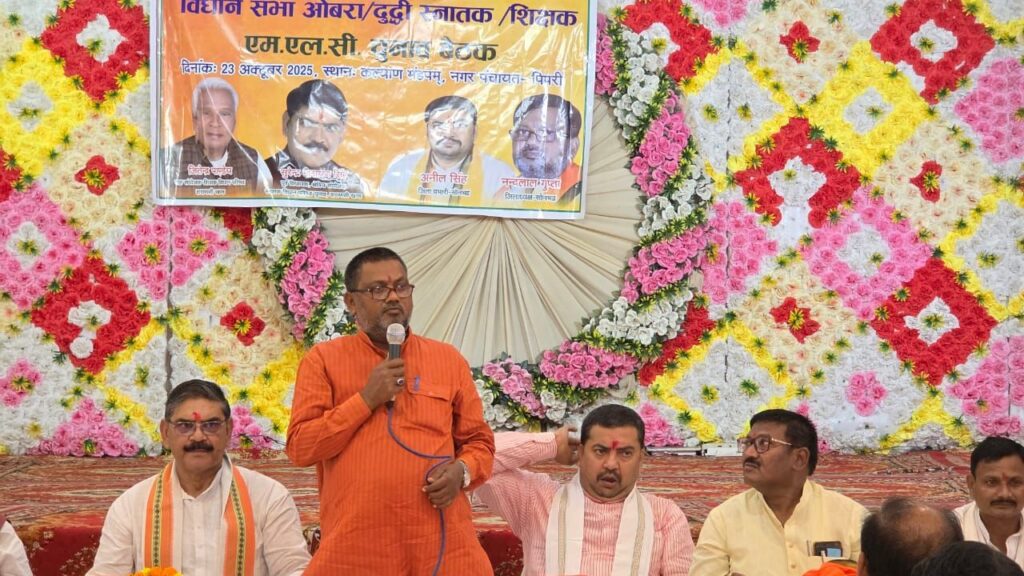 विधानसभा ओबरा एवं दुद्धी स्नातक शिक्षक एमएलसी चुनाव—वाराणसी खंड के संदर्भ में गुरुवार को कल्याण मंडल, पिपरी में संयुक्त बैठक आयोजित की गई। बैठक में प्रमुख वक्ताओं ने आगामी चुनाव को देखते हुए संगठन को मजबूत बनाने, शिक्षकों के बीच संपर्क बढ़ाने तथा रणनीति को धार देने पर विस्तृत चर्चा की।