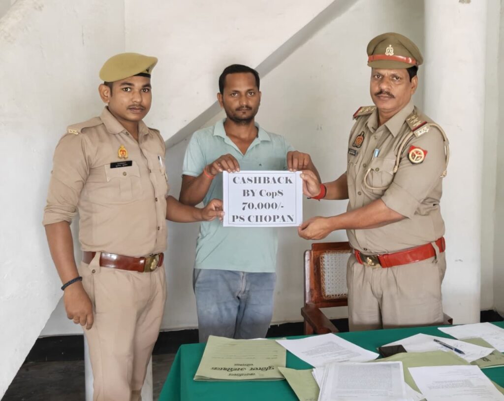 चोपन थाना की साइबर टीम ने एक आवेदक के साथ हुई ₹70,000 की ऑनलाइन धोखाधड़ी की राशि सफलतापूर्वक उसके मूल बैंक खाते में वापस करा दी है। यह राशि 28 सितंबर 2025 को धोखाधड़ी से ट्रांसफर की गई थी और 30 अक्टूबर 2025 को वापस मिली।आवेदक अनिल कुमार, निवासी ग्राम सलखन बरवा टोला, थाना चोपन, के बैंक से जुड़े मोबाइल नंबर का कोड प्राप्त कर अज्ञात व्यक्तियों ने फोन-पे के माध्यम से उनके खाते से ₹70,000 एक अज्ञात खाते में ट्रांसफर कर दिए थे।