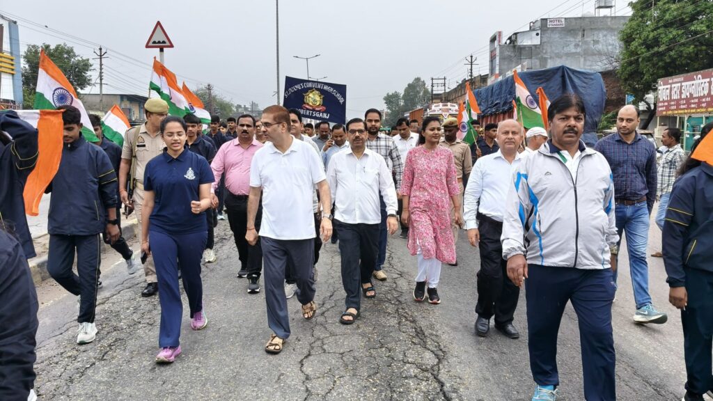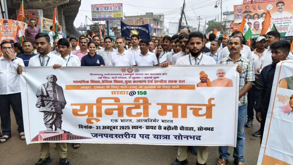 SONBHADRA । जिलाधिकारी बद्री नाथ सिंह की अध्यक्षता में भारत के लौह पुरुष सरदार वल्लभभाई पटेल के 150वीं जयंती के उपलक्ष्य में जनपद में “यूनिटी मार्च” कार्यक्रम का भव्य आयोजन किया गया। रिमझिम वर्षा के फुहारों के बीच डायट परिसर से यूनिटी मार्च प्रारंभ होकर बढ़ौली चौराहा राबर्ट्सगंज से होते हुए डायट परिसर में समापन हुआ।