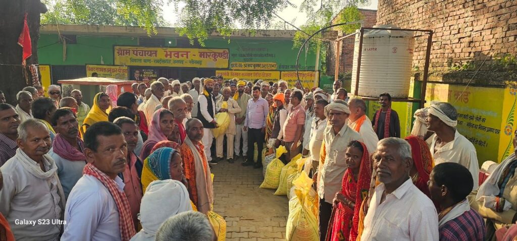 सदर विकास खण्ड क्षेत्र के अन्तर्गत मारकुण्डी ग्राम पंचायत भवन पर राष्ट्रीय खाद्य सुरक्षा योजना के अन्तर्गत चयनित 150 किसानों को निशुल्क चना बीज वितरण किया गया