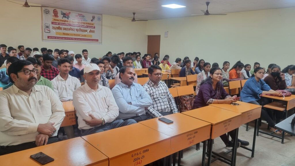 राजकीय स्नातकोत्तर महाविद्यालय ओबरा, सोनभद्र में राष्ट्रीय गीत वंदे मातरम के 150 वर्ष पूरे होने के उपलक्ष्य में बौद्धिक संगोष्ठी का सुंदर आयोजन किया गया । कार्यक्रम का शुभारंभ महाविद्यालय के प्राचार्य, प्राध्यापकों, कर्मचारियों, एनएसएस, एनसीसी के स्वयंसेवकों के साथ-साथ महाविद्यालय के छात्र-छात्राओं द्वारा सामूहिक रूप से राष्ट्रीय गीत वंदे मातरम के गायन के साथ किया गया।