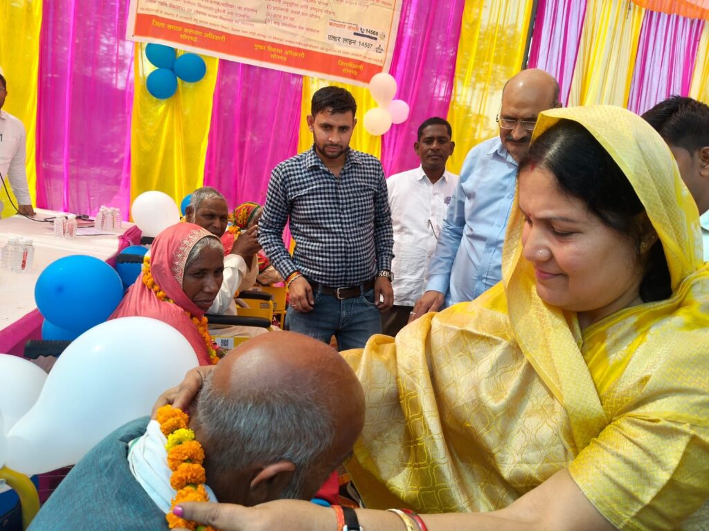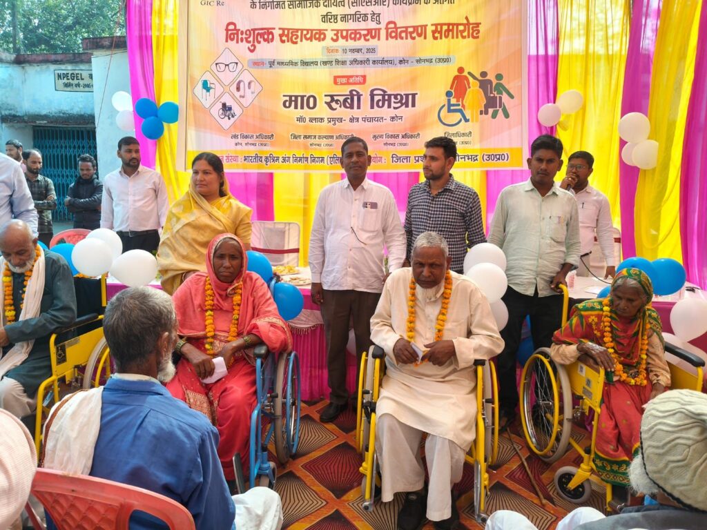 विकास खण्ड क्षेत्र के विभिन्न गांवों से चयनित 90 वरिष्ठ जनों को उच्च प्राथमिक विद्यालय कोन में सीएसआर के आरवीवाई संस्था एलिम्को कानपुर द्वारा 90 वरिष्ठ जनों को व्हील चेयर समेत अन्य सहायक उपकरणों का वितरण किया गया।उपकरण पाकर बुजुर्गो के चेहरे पर मुस्कान आ गई। वितरण कार्यक्रम् का शुभारंभ ब्लाक प्रमुख रुबी मिश्रा व खण्ड विकास अधिकारी डा जीतेन्द्र नाथ दुबे ने भगवान विरसा मुंडा के चित्र पर माल्यार्पण किया।