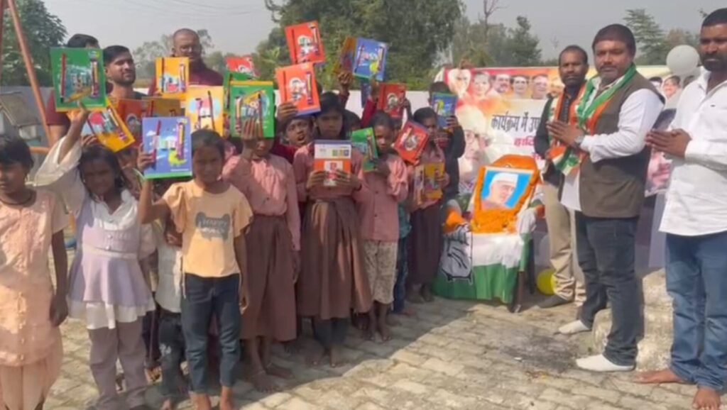 SONBHADRA । आज स्वतंत्र भारत के प्रथम प्रधानमंत्री पंडित जवाहरलाल नेहरू के जन्म दिवस पर जिसको सभी लोग बाल दिवस के रूप में मनाया करते हैं, चुकी पंडित जी का लगाव बच्चों से बहुत हुआ करता था, इस अवसर पर घोरावल विधानसभा के जैत ग्राम में प्राथमिक विद्यालय पर पहुंचकर वहां स्कूल के बच्चों के साथ पंडित जी का जन्म दिवस मनाया गया। जिसमें बच्चों को कॉपी, पेंसिल ,रबर, इरेजर एवं टॉफी देकर देश के प्रथम प्रधानमंत्री को याद किया गया और उन्हें श्रद्धांजलि अर्पित की गई ।