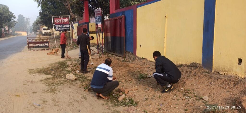 थाना पिपरी परिसर में रविवार की सुबह पुलिसकर्मियों ने श्रमदान कर साफ-सफाई अभियान चलाया। सुबह से ही थाने के स्टाफ ने मिलकर परिसर को स्वच्छ और व्यवस्थित बनाने का जिम्मा उठाया। इस दौरान पुलिसकर्मियों ने थाने के बाहर सड़क किनारे व खाली स्थानों पर उगी झाड़ियां काटीं, कचरा और गंदगी हटाकर सफाई की। थाने के भीतर मौजूद कार्यालय कक्ष, रिकॉर्ड रूम, हवालात, वाहन स्टैंड और परिसर के अन्य हिस्सों की भी अच्छे ढंग से सफाई की गई। थाने में पड़े अनावश्यक सामान को व्यवस्थित किया गया तथा जहां-जहां जरूरत थी वहां पानी की धुलाई भी कराई गई।