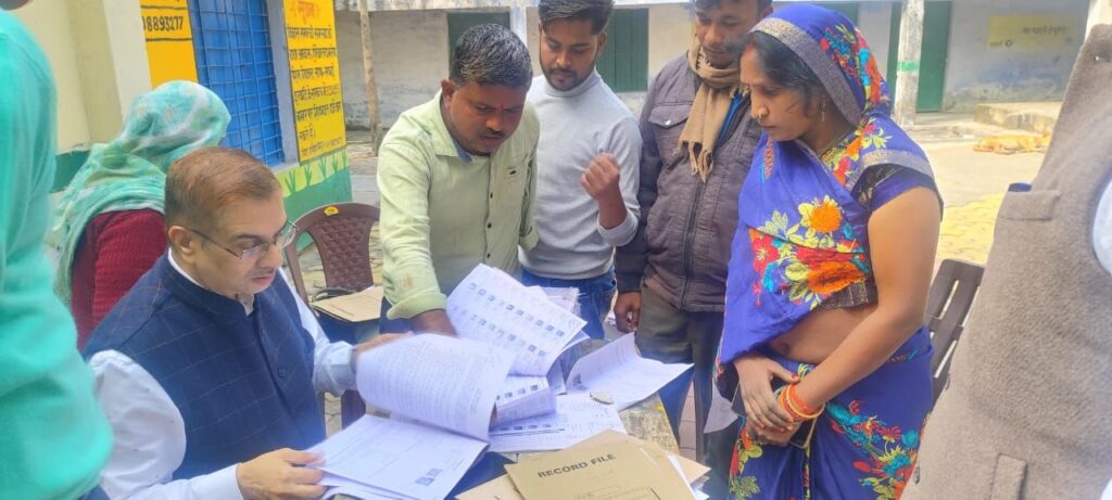 जिलाधिकारी बी० एन० सिंह ने आज भ्रमणशील रहकर विशेष प्रगाढ़ पुनरीक्षण अभियान के तहत विकास खण्ड चतरा के प्राथमिक विद्यालय तियरा कला, बरइल, लसड़ा, बी0आर0सी0 चतरा, तहसील राबर्ट्सगंज में विशेष प्रगाढ़ पुनरीक्षण अभियान के तहत मतदाताओं के नाम फीडिंग करने, गणना प्रपत्र का वितरण, बांटे गये गणना प्रपत्रों के एकत्रित करने की प्रगति का जायजा लिये।