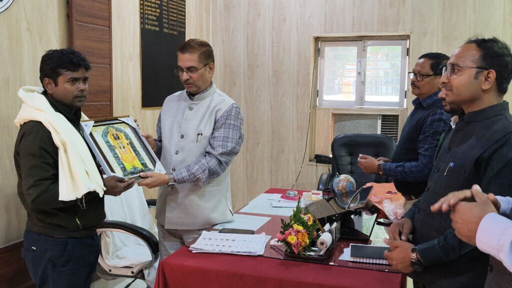__बी0एल0ओ0 आशीष कुमार सिंह को जिलाधिकारी द्वारा पुष्पगुच्छ व अंगवस्त्रम् भेंट कर किया गया सम्मानित
