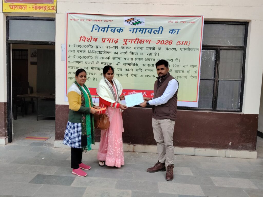 जिसको कड़ी मेहनत लगन के साथ कार्य पर लगाए गए बीएलओ अर्चना एवं सुपरवाइजर अनीता गुप्ता ने लगन और मेहनत के साथ घोरावल विधानसभा 400 के अंतर्गत आने वाले बूथ नंबर 266 का एस आई आर का कार्य शत प्रतिशत पूर्ण कर लिया गया है। उक्त आशय की जानकारी अनीता गुप्ता सुपरवाइजर ने दी है। घोरावल नायब तहसीलदार विदित द्वारा बीएलओ को प्रशस्ति पत्र दिया गया