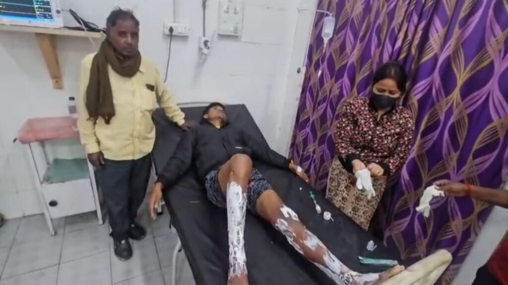 अनपरा नपं के वार्ड 2 भगतसिंह नगर मोहल्ला डिबुलगंज निवासी रहिस खान ने बताया कि सुबह 8:0 के आसपास बहु नास्ता बना रही थी।अचानक सिलेंडर में आग लग गया जिससे बहु ने शोर मचाया और भाग कर अपनी जान बचाई आवाज सुनकर बेटा इम्तियाज शेख पहुचा आग बुझाने के दौरान बुरी तरह से झुलस गया।उसे नगर में स्थित सयुक्त अस्पताल में भर्ती कराया चिकित्सको ने प्राथमिक उपचार के बाद जिला अस्पताल रेफर कर दिया।