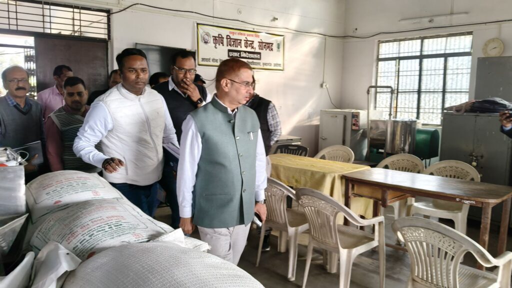 Sonbhadra । जिलाधिकारी बी0एन0 सिंह ने आज कृषि विज्ञान केन्द्र मगुंराही सोनभद्र का औचक निरीक्षण किये, निरीक्षण के दौरान जिलाधिकारी ने कृषि विज्ञान केन्द्र द्वारा उत्पादित उन्नतिशील प्रजाति के बीजों का निरीक्षण किये, निरीक्षण के दौरान उन्होंने बीज शोधन के सम्बन्ध में किये जा रहे प्रयोग के सम्बन्ध में कृषि वैज्ञानिकों से जानकारी प्राप्त किये, इस दौरान उन्होंने कृषि विज्ञान केन्द्र में मछली प्रदर्शन इकाई, वर्ष भर उपलब्ध रहने वाले चारा इकाई के साथ-साथ प्रशिक्षणार्थी कृषक द्वारा तैयार किये गये ढिंगरी व बटन मशरूम के सम्बन्ध में भी जानकारी प्राप्त किये।