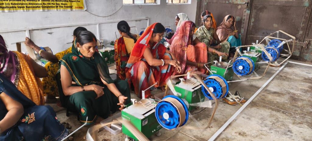 Sonbhadra। दुद्धी को विकास खंड दुद्धि के रेशम फार्म मलदेवा में रेशम विभाग के द्वारा संचालित समर्थ योजना के तहत चल रहे प्रशिक्षण का समापन हुआ, जिसमें 28 स्वयं सहायता समूह की महिलाओं ने 35 दिन प्रतिभाग कर ऑटोमेटिक रिलिंग मशीन से धागा करण का प्रशिक्षण लिया। मुख्य प्रशिक्षक दत्ता जी , सहायक श्री जनमेजय पटेल तथा विभागीय कार्मिक श्री सुरेश कुमार सहायक रेशम विकास अधिकारी पूरी तन्मयता से कार्यक्रम को सफल कराया।