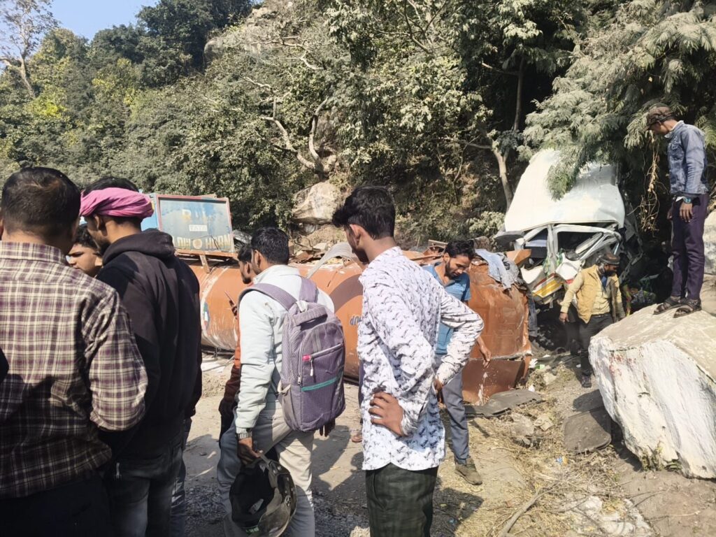 राबर्ट्सगंज कोतवाली क्षेत्र के मंगलवार सुबह 10 बजे के लगभग मारकुंडी पुरानी घाटी के दुर्गा मंदिर के नीचे दूसरे मोड पर अचानक ब्रेक फेल हो जाने से चट्टान में जाकर टकरा गई, जिससे टैंकर की टैंक पलट गया और केबिन में चालक खलासी दोनों भाई फंस गए, जिसे निकाल कर जिला अस्पताल भेज दिया गया।