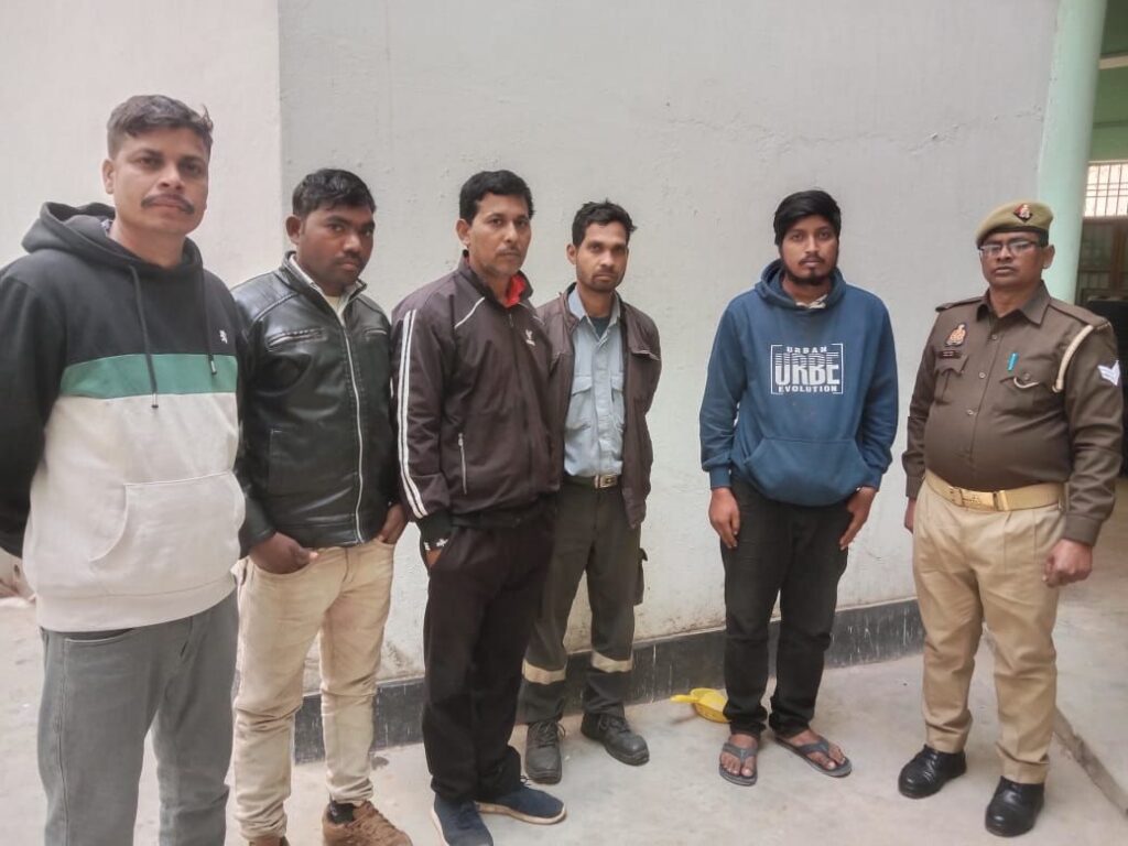गिरफ्तार अभियुक्तों में शम्भूनाथ यादव निवासी रेनुकूट, बनारसी प्रसाद गोंड व नन्द कुमार निवासी अनपरा, पंकज कुमार सिंह व भक्ति दास निवासी हिण्डालको कॉलोनी शामिल हैं। सभी को आवश्यक कार्रवाई के बाद माननीय न्यायालय प्रेषित किया गया।