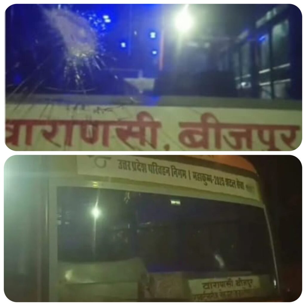 बस चालक आशीष धर दुबे,परिचालक अमरेंद्र ने बताया कि वाराणसी से चलकर गुरुवार की रात्रि साढ़े आठ बजे के लगभग जरहा पुल से पहले पहुंचे थे कि अचानक कुछ अराजक तत्वों द्वारा बस पर पत्थर बाजी की गई जिससे बस के शीशे टूट गए।