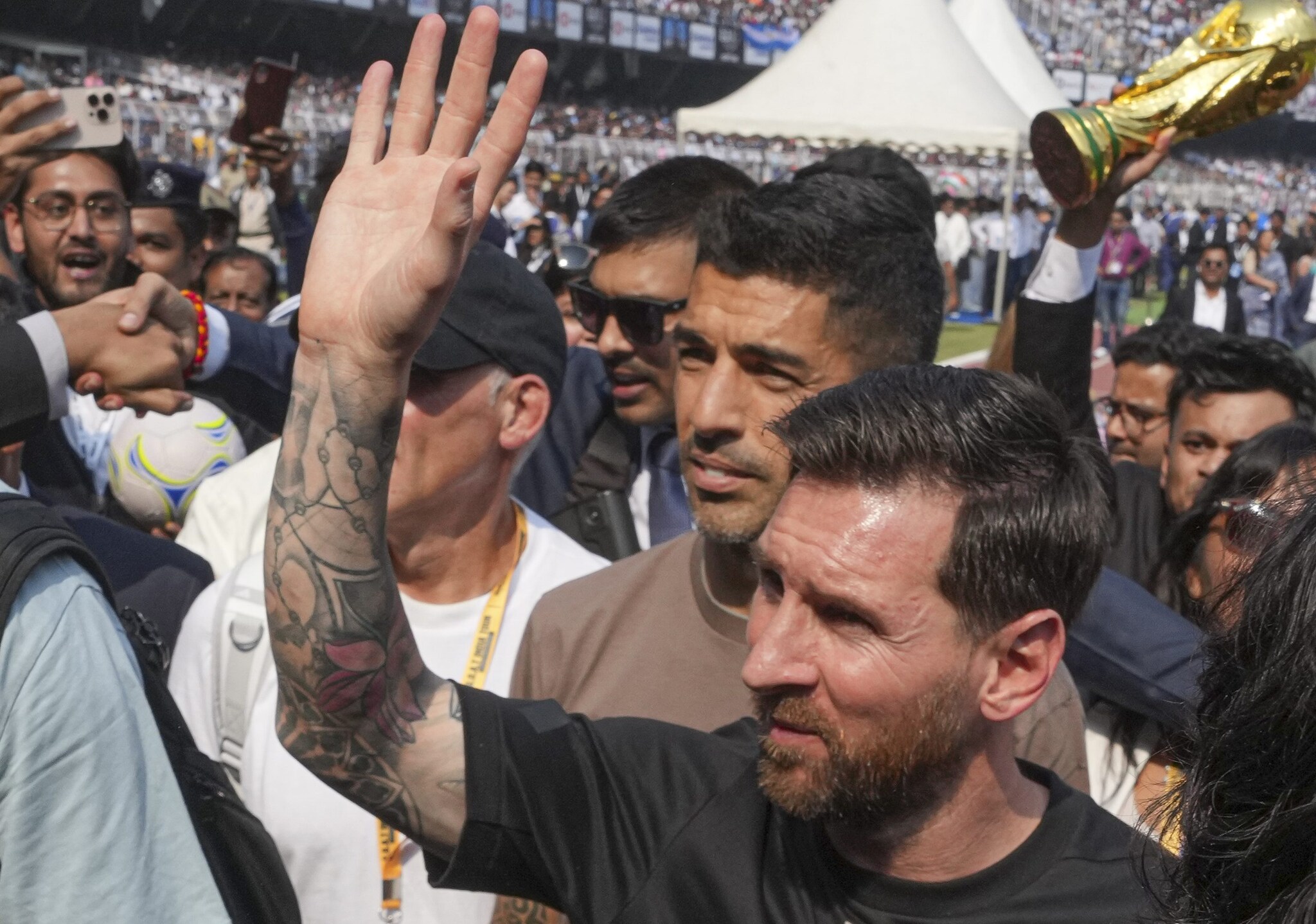 मेसी दोपहर 3:30 बजे स्टेडियम में पिच की ओर जाने वाले रास्ते से प्रवेश करेंगे, जहां उनकी कारें तैयार रहेंगी और जीओएटी कॉन्सर्ट समाप्त होते ही वे सीधे हवाई अड्डे के लिए रवाना हो जाएंगे. संगीत के साथ भव्य स्वागत के बाद मेस्सी छोटे फुटबॉल मैदान की ओर जाएंगे, जहां कुछ भारतीय हस्तियां मैच खेल रही होंगी. मेसी खिलाड़ियों का अभिवादन करेंगे और टीमों के साथ ग्रुप फोटो खिंचवाएंगे.