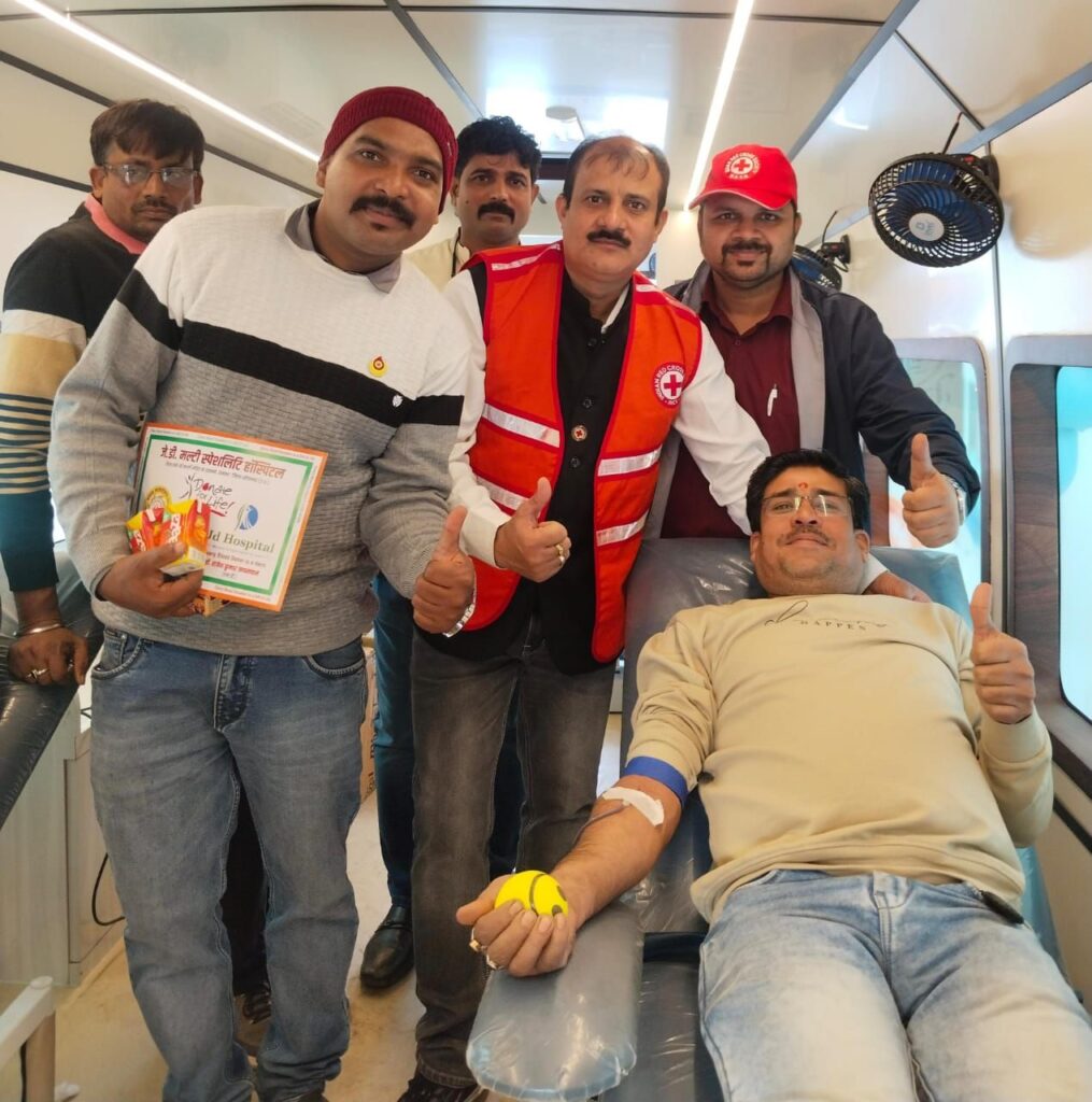 रेणुकूट नगर के शिवा पार्क स्थित जेडी मल्टी स्पेशलिटी हॉस्पिटल परिसर में रविवार को एक स्वैच्छिक रक्तदान शिविर का आयोजन किया गया। इस शिविर में कुल 45 लोगो ने रजिस्ट्रेशन कराया व जांच के उपरांत 35 लोगों ने स्वैच्छिक रक्तदान कर मानवता की सेवा में अपना योगदान दिया। रक्तदान शिविर का आयोजन इंडियन रेड क्रॉस सोसाइटी,रक्तदाता समूह प्रयास फाउंडेशन एवं जेडी मल्टी स्पेशलिटी हॉस्पिटल के संयुक्त सहयोग से किया गया।