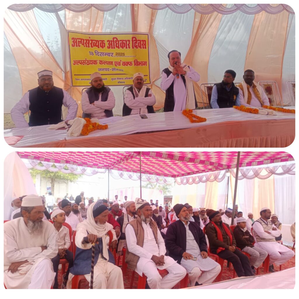 Sonbhadra । अल्पसंख्यक अधिकार दिवस का आयोजन कलेक्ट्रेट सभागार में किया गया, इस मौके पर जिलाधिकारी बी0एन0 सिंह, पूर्व राज्यसभा सांसद रामसकल, अपर जिलाधिकारी वि० रा० मुख्य चिकित्सा अधिकारी सोनभद्र, जिला सैनिक एवं पुनर्वास अधिकारी सोनभद्र, जिला अल्पसंख्यक कल्याण अधिकारी सोनभद्र सहित अन्य अधिकारीगण,अल्पसंख्यक समुदाय के लोग उपस्थित रहे।