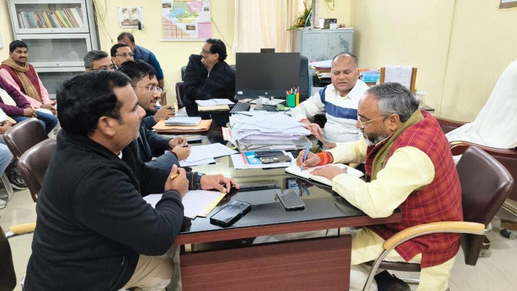 Sonbhadra । विधायक सदर भूपेश चौबे आज अपर जिलाधिकारी के कक्ष में धान खरीद से सम्बन्धित अधिकारियों के साथ बैठक की बैठक के दौरान विधायक ने उपस्थित अधिकारियों को सम्बोधित करते हुए कहा कि प्रदेश सरकार के मंशा की अनुरूप धान क्रय केंद्रों पर धान की खरीद सुनिश्चित की जाये, इसमें किसी प्रकार की शिथिलता न बरती जाये क्रय केन्द्रोें पर कृषक बन्धुओं को २ाासन द्वारा अनुमन्य सुविधायें उपलब्ध करायी जाये, क्रय केंद्रों पर नियमित रूप से धान की खरीद की जाये, जिससें कृषक बन्धुओं को किसी प्रकार की असुविधा का सामना न करने पाये।