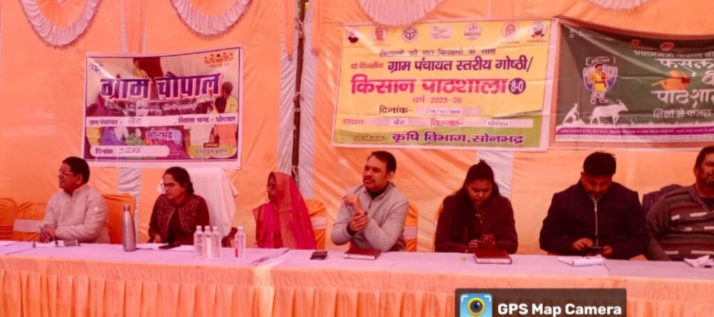 Sonbhadra । आज मुख्य विकाश अधिकारी आईएएस जागृति अवस्थी के नेतृत्व में ग्राम पंचायत खैरा के कम्पोजिट विद्यालय कपुरा विकास खण्ड घोरावल में ग्राम चौपाल आयोजित किया गया। जिसमे विभिन्न योजनाओं मनरेगा, प्रधानमंत्री आवास, ग्रामीण आजिविका मिशन, जल जिवन मिशन आदि की जानकारी ग्राम वासियों को दिया गया एवं उनकी समस्याओं को सुना गया।