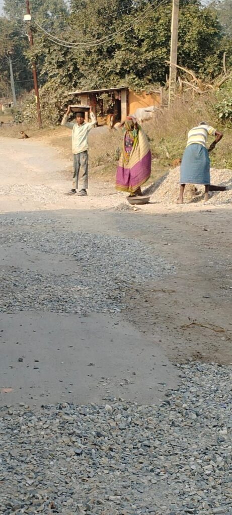 स्थानीय लोगों का आरोप है कि सड़क निर्माण में मानकों को पूरी तरह ताक पर रख दिया गया है। मिट्टी युक्त पौन इंच गिट्टी का धड़ल्ले से इस्तेमाल हो रहा है।नियमानुसार आवश्यक तारकोल (बिटुमिन) का छिड़काव किए बिना ही भुनी गिट्टी बिछाकर रोलर चला दिया जा रहा है। गड्ढों की मरम्मत के नाम पर सिर्फ पौन इंच गिट्टी डालकर ऊपर से तारकोलिंग गिट्टी फैला दी जा रही है—मानो कागज़ों में सड़क चमकानी हो, जमीन पर नहीं।