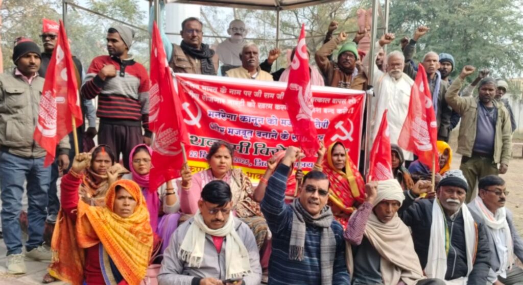 जहां कम्युनिस्ट पार्टी के नेताओं ने कहा कि दुर्भाग्य है कि आजादी के महानायक राष्ट्रपिता महात्मा गांधी के नाम पर दुनियां की सबसे बड़ी एतिहासिक योजना “महात्मा गांधी ग्रामीण रोजगार गारंटी एक्ट” तत्कालीन यू.पी. ए. सरकार ने वाम दलों के पहल पर ही ग्रामीण खेत मजदूरों के हित में पास किया था। जिससे देश में करोड़ों खेत मजदूरों को काम की गारंटी मिली हुई थी ।