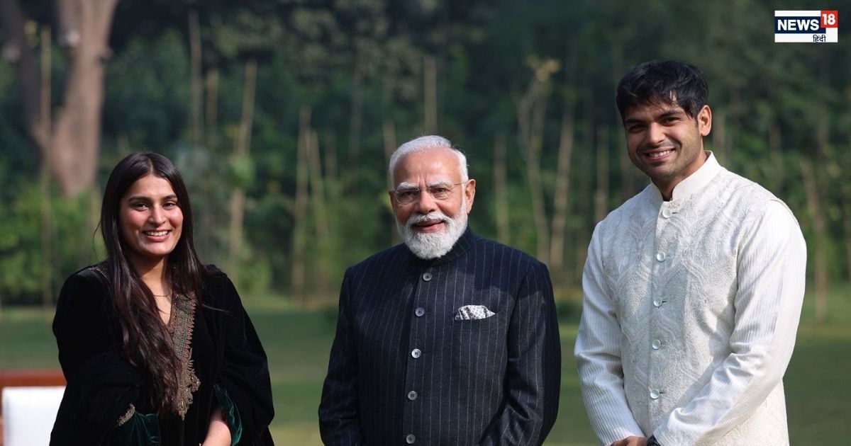 प्रधानमंत्री नरेंद्र मोदी ने सोशल मीडिया प्लेटफॉर्म एक्स पर इस मुलाकात को लेकर खुशी जाहिर की. उन्होंने लिखा, ‘आज पहले 7, लोक कल्याण मार्ग पर नीरज चोपड़ा और उनकी पत्नी हिमानी मोर से मुलाकात हुई.’ पीएम ने यह भी बताया कि स्टार एथलीट से खेल समेत कई विषयों पर चर्चा भी हुई. पोस्ट में आगे लिखा गया, ‘खेल समेत कई मुद्दों पर अच्छी बातचीत हुई.’