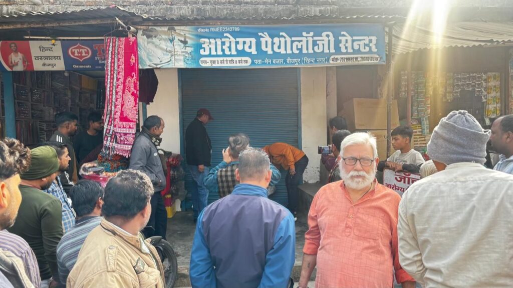 मंगलवार को चिकित्सकीय टीम की छापेमारी से बीजपुर बाजार के अवैध पैथालॉजी और झोला छाप डाक्टरों में हड़कंप मच गया ।जांच की खबर मिलते ही अपने अपने दुकानों के शटर गिरा कर संचालक फरार हो गए । टीम ने कई जगहों पर जांच पड़ताल कर सील और नोटिस चस्पा की कार्रवाई की।कार्रवाई के डर से पैथालॉजी और झोला छाप डाक्टर अपनी दुकानें बंद कर गायब रहे।