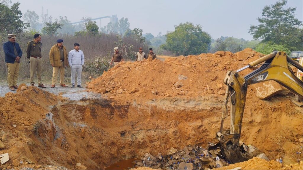 अवगत कराना है कि थाना रॉबर्ट्सगंज में पंजीकृत मुकदमों से संबंधित अंग्रेजी शराब को विनष्टीकरण कराए जाने हेतु माननीय मुख्य न्यायिक मजिस्ट्रेट, सोनभद्र द्वारा पारित आदेश दिनांक 19.11.2025 के अनुपालन में तथा गठित मजिस्ट्रेटीय समिति के नेतृत्व में आज दिनांक 24.12.2025 को जेसीबी मशीन की सहायता से गड्ढा खुदवाकर मौके पर ही शराब का नष्टिकरण किया गया।