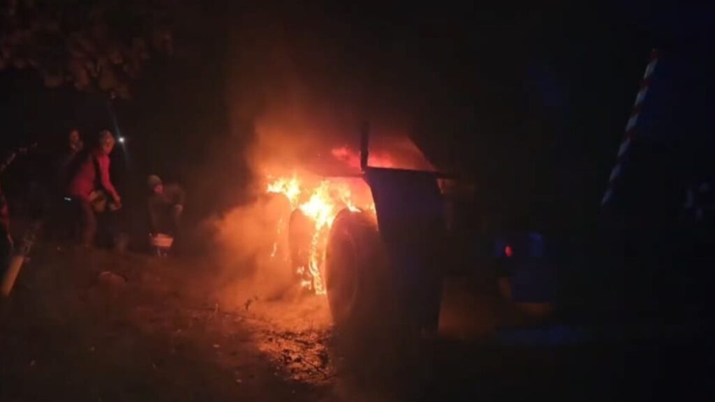 अनपरा थाना क्षेत्र अंतर्गत रीवा–रांची राज्य मार्ग पर बंजारा रिसॉर्ट के समीप बुधवार की देर रात बड़ा हादसा टल गया।सड़क किनारे खड़े एक बल्कर वाहन पर अचानक हाईटेंशन विद्युत तार गिरने से उसके टायर में आग लग गई। देखते ही देखते टायर धू-धू कर जलने लगा, जिससे मौके पर अफरा-तफरी मच गई।