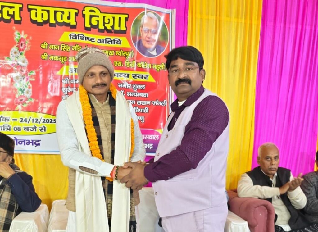 म्योरपुर ब्लॉक के कस्बा स्थित बिड़ला विद्या इंटर कालेज परिसर में बुधवार की रात जनप्रतिनिधि एवं व्यापार मंच के तत्वाधान में स्वर्गीय अटल बिहारी बाजपेयी को समर्पित कवि सम्मेलन का आयोजन किया गया।देश के विभिन्न राज्यों से आए कवियों ने रचनाओं के जरिए श्रोताओं को रात हंसाते और गुदगुदाने के साथ गंभीर मुद्दों पर सोचने को मजबूर किया।