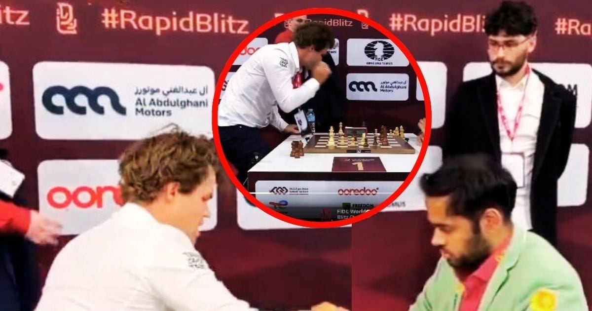 Magnus Carlsen slams table again: विश्व ब्लिट्ज चैंपियनशिप में भारत के अर्जुन एरिगैसी ने मैग्नस कार्लसन को हराकर सनसनी मचा दी. हार के बाद कार्लसन ने अपना आपा खो दिया और टेबल पर हाथ मारा, वीडियो वायरल हुआ.