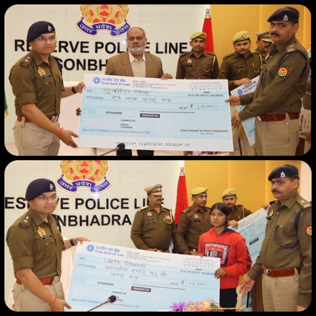 Sonbhadra । नववर्ष के शुभ अवसर पर पुलिस अधीक्षक अभिषेक वर्मा द्वारा साइबर अपराध से पीड़ित नागरिकों को बड़ी राहत प्रदान की गई। जनपदीय साइबर सेल एवं थानों पर गठित साइबर सेल के प्रभावी एवं त्वरित प्रयासों से साइबर फ्राड के 15 पीड़ितों को कुल ₹21,75,675/- (इक्कीस लाख पचहत्तर हजार छह सौ पचहत्तर रुपये) की धनराशि चेक के माध्यम से वापस कराई गई।