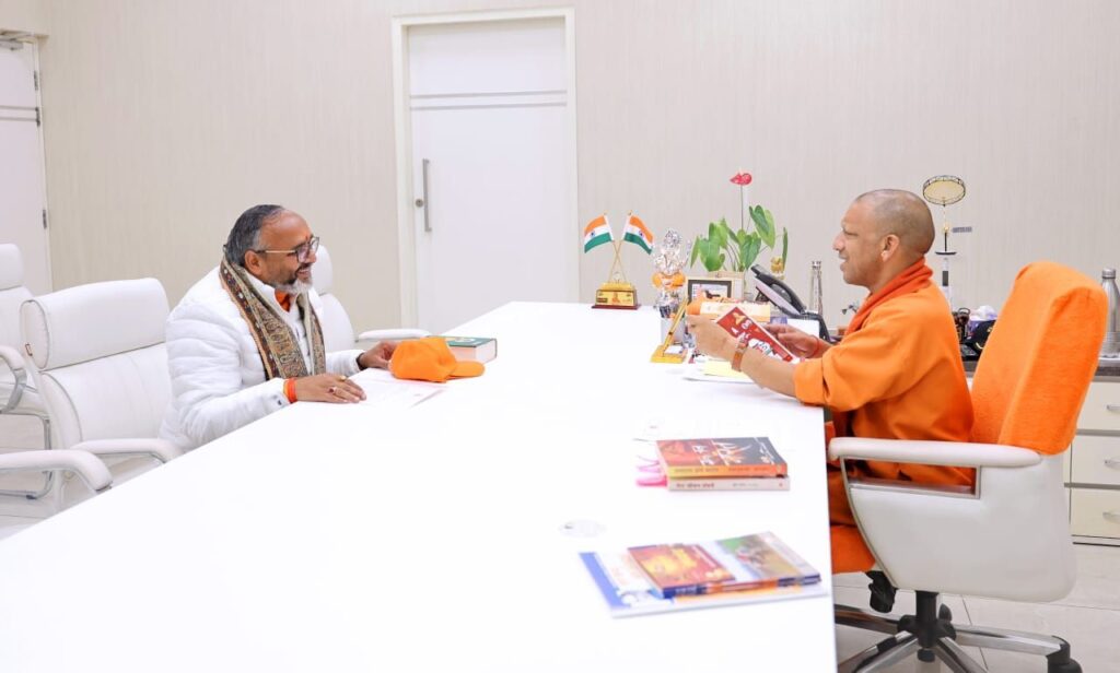 Sonbhadra । सदर विधायक भूपेश चौबे शुक्रवार को लखनऊ में मुख्यमंत्री योगी आदित्यनाथ से मिलकर खेल महाकुंभ में सोनभद्र आने का निमंत्रण दिया। सीएम योगी खेल को लेकर सदर विधायक का उत्साहवर्धन किए और आने का आश्वाशन दिया।