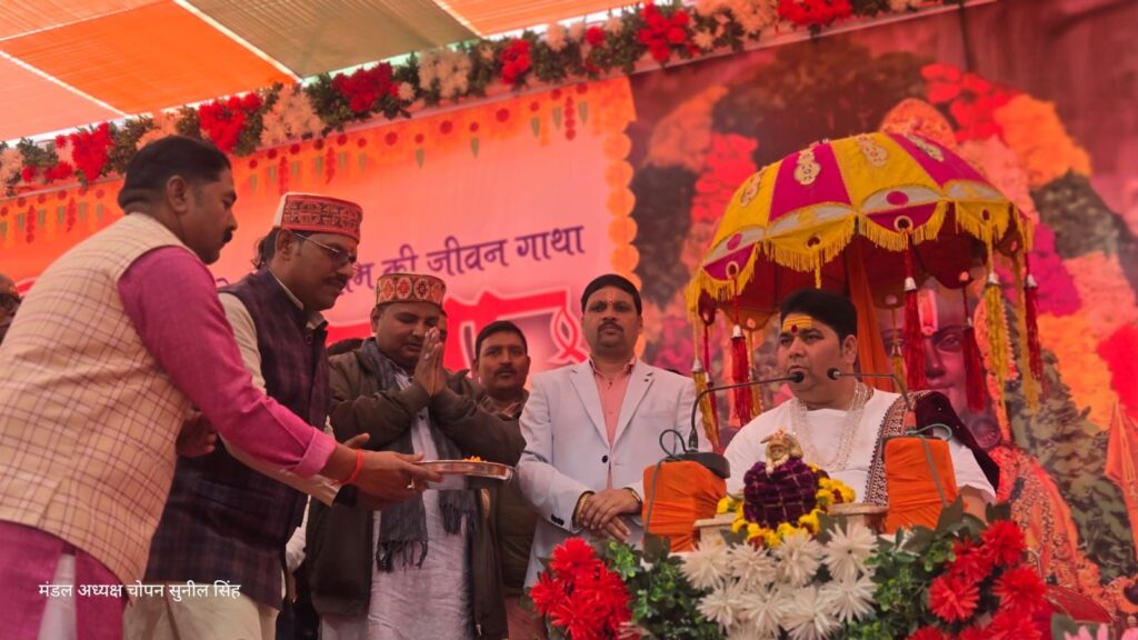 कार्यक्रम में चोपन सहित जनपद सोनभद्र के अनेक गणमान्य व्यक्ति उपस्थित रहे। इस अवसर पर आयोजन समिति के अध्यक्ष सुनील सिंह ने बताया कि सप्तदिवसीय श्री राम कथा के माध्यम से क्षेत्र में धर्म, संस्कार और भक्ति का संदेश जन-जन तक पहुंचाया जा रहा है। कथा का समापन प्रतिदिन भजन-कीर्तन एवं आरती के साथ किया जा रहा है।