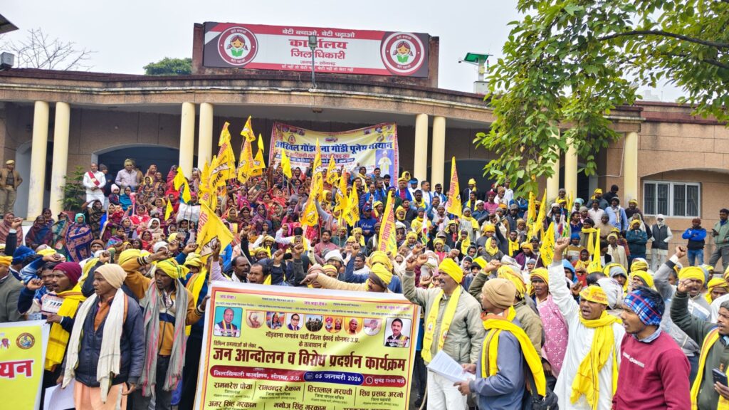 Sonbhadra । जनपद में औद्योगिक घरानों के आने से जहां विकाश को गति मिलने की राह देखी जा रही है तो वहीं जल, जंगल और जमीन बचाने को लेकर आदिवासियों द्वारा विरोध भी शुरू हो गया है, आज बड़े पैमाने पर पर सैकड़ों की संख्या में गोंडवाना गणतंत्र पार्टी के बैनर तले आदिवासी महिलाएं और पुरुषों ने कड़कड़ाती ठंड में कलेक्ट्रेट पहुंच कर हुंकार भरी, राष्ट्रपति से लेकर सूबे के मुखिया तक अपनी आवाज को कलेक्ट्रेट के जरिए पहुंचकर हस्तक्षेप करने की मांग की, कहा मांग पूरी नहीं हुई तो उग्र आंदोलन को बाध्य होंगे।